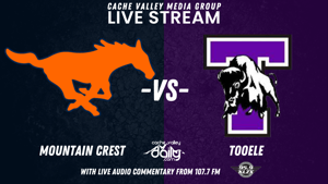 The Mountain Crest Mustangs vs Tooele Bison football broadcast is scheduled to begin at 6:50 p.m.