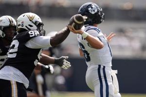 A few factors have played into Utah State’s pass protection. For one, it’s a fairly inexperienced unit when it comes to playing on the field. Two of the Week 1 starters, left tackle Jake Eichorn and center Jimmy Liston, had basically zero snaps at the FBS level and the rest of the starters — Trey Andersen, George Maile and Tavo Motu’apuaka — each had less than a season’s worth of starts, if even that much, prior to 2025. Add on top of that the fact Andersen and Eichorn have been in and out of games due to injury. Andersen missed three games and Eichorn is now out after an injury against Vanderbilt. This has pressed Jr Sia into more consistent snaps, with the redshirt sophomore having to start at both right and left tackle in the last couple of weeks.