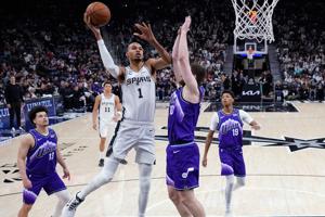 The backcourt trio of Stephon Castle (18 points), Dylan Harper (15) and De’Aaron Fox (14) combined for 47 points for San Antonio.